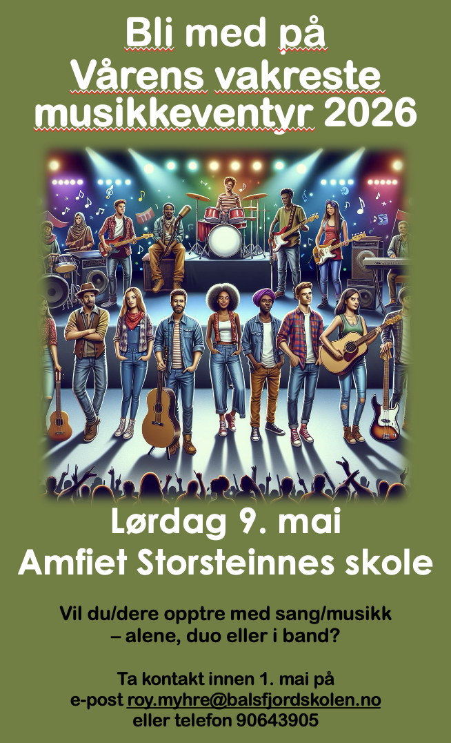 9. mai  arrangeres Vårens Vakreste MusikkEventyr i Amfiet på Storsteinnes.